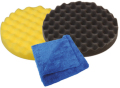 Praktisk sett med rubbingrondell, poleringsvoksrondell og mikrofiberklut. Alt du trenger for en vellykket polering. Settet kommer i ulike diametere for å passe til de aller fleste poleringsmaskiner.