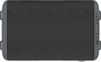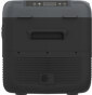 Lokket kan åpnes fra begge sider av boksen. Det spiller dermed ingen rolle hvilken vei du plasserer den. På siden sitter en integrert flaskeåpner og USB/USB-C uttak for lading av telefon etc. Kraftige bærehåndtak gjør den enkel å transportere. Innvending har boksen LED-lys.