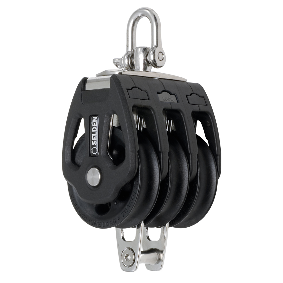 Seldén Plain Bearing Blocks (PBB) passer perfekt ved høy og statisk belastning. Skiver i Acetal med et syrefast bånd mellom skivens aksling og sjakkelhodet. Stive glassfiberforsterkede sider hindrer tauet i å kile seg fast. Svivelen kan låses i begge retninger uten bruk av verktøy.