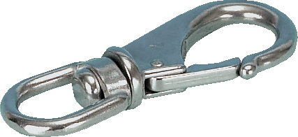 Taukrok (karabinkrok) i syrefast stål. Stort gap i forhold til størrelsen. Ingen skarpe kanter eller små fjærer som kan gå i stykker.